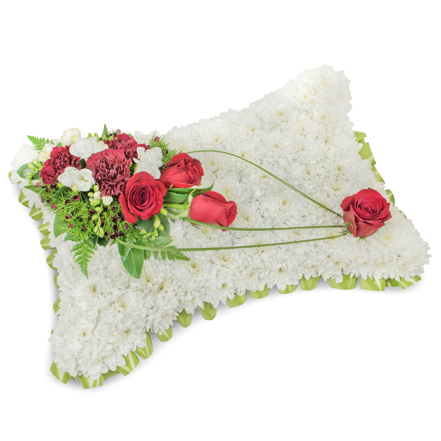 Express your heartfelt condolences with our artfully arranged sympathy bouquet that marries classic beauty with modern elegance. Showcasing white chrysanthemums, the gentle charm of white freesias, bold red roses, and rich dark red carnations, along with the delicate touch of dianthus and refined bear grass, this bouquet is a masterpiece of floral design. Every flower is hand-selected to ensure optimal freshness and peak quality.